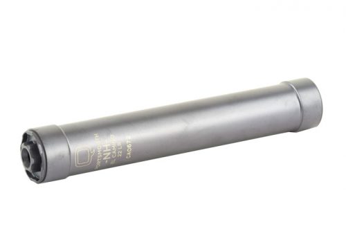 Q, Erector 9, Suppressor, 9MM, Anodized Finish, Black, Stainless Steel Construction, 1/2×28 Piston Warning